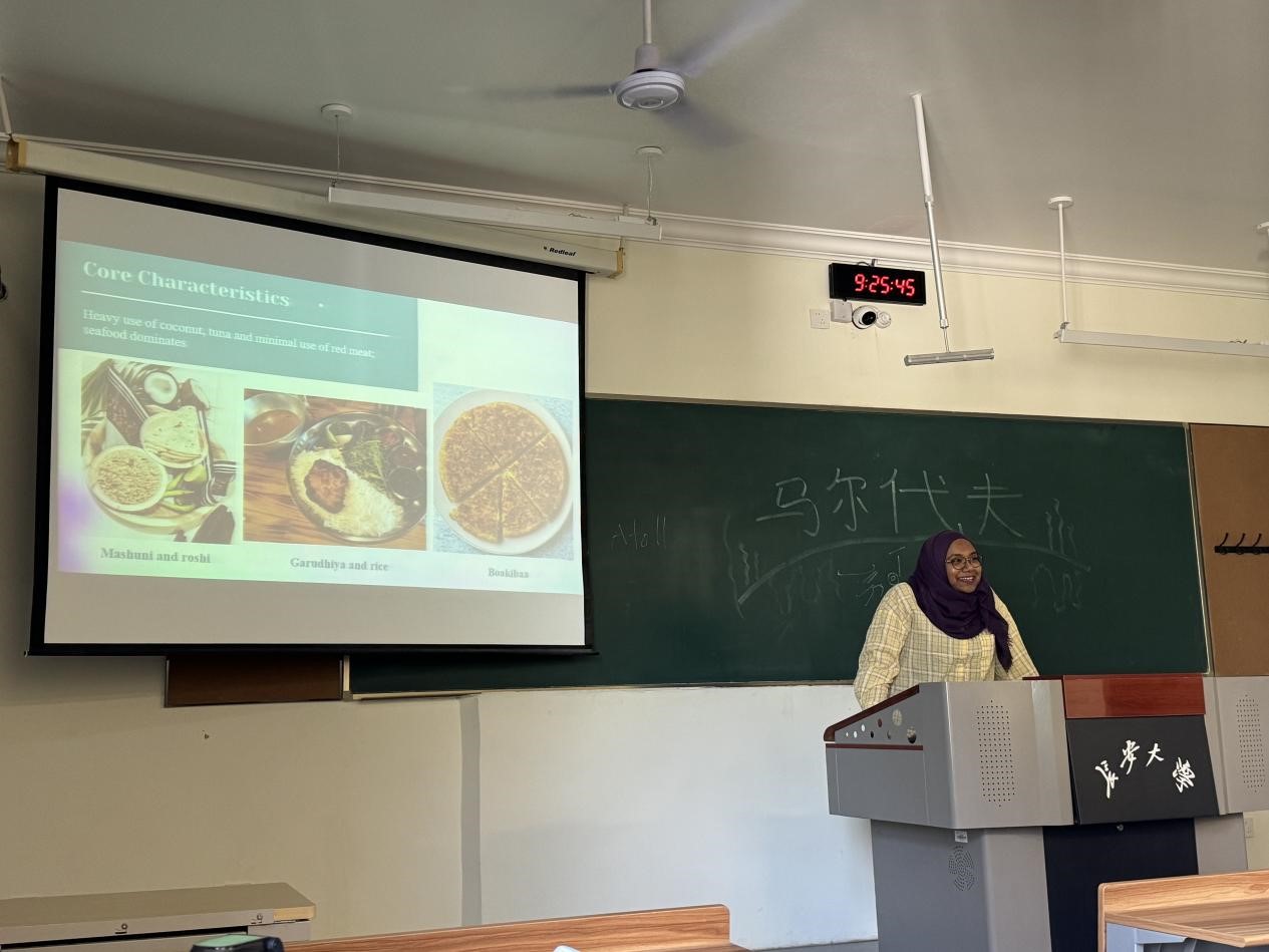 近日,来自马尔代夫维拉学院的中文教师阿米拉作为主讲人,以丰富的知识储备与生动的讲述,为国际中文教育班的同学带来了一场别开生面的交流盛宴。