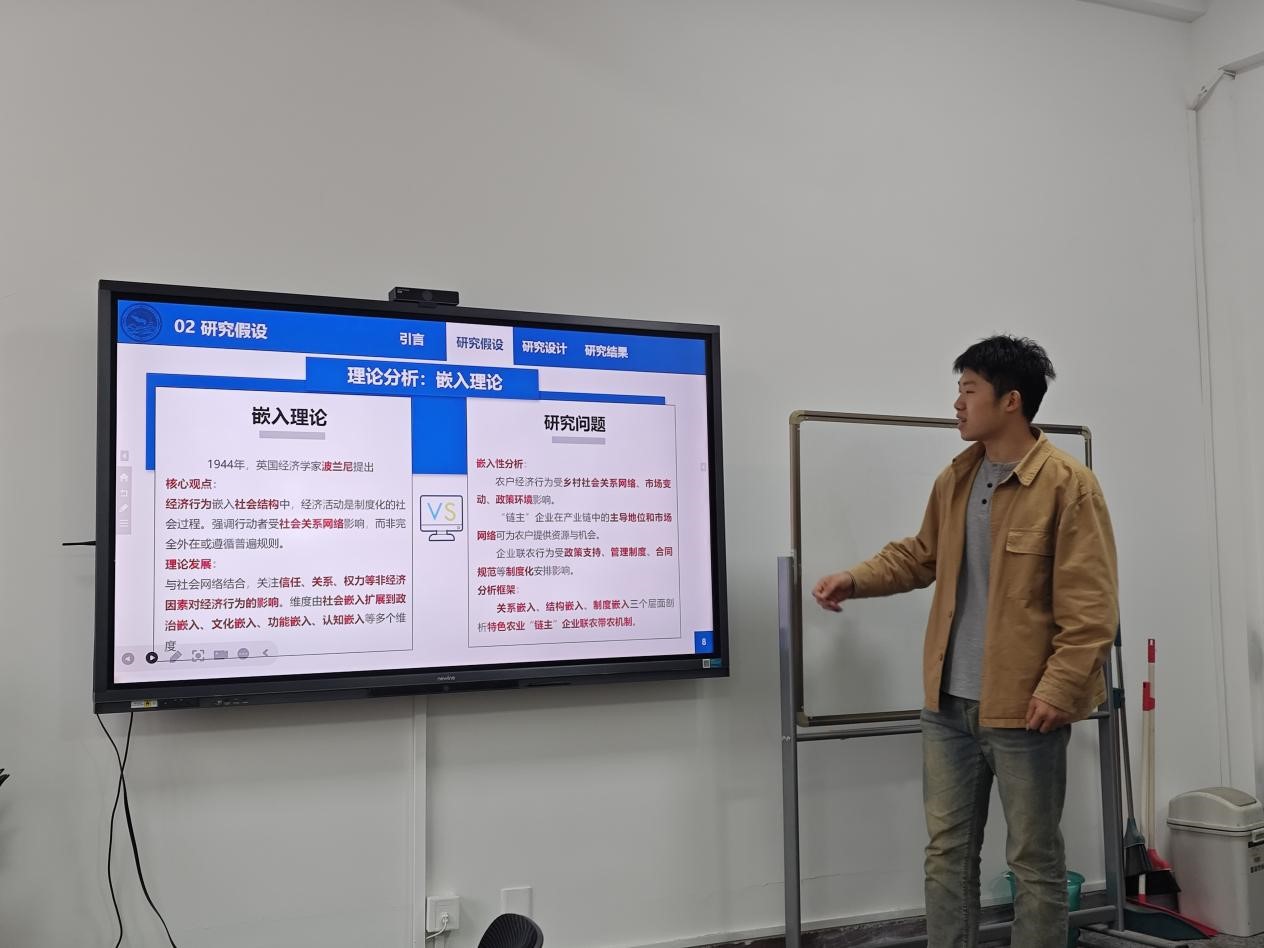 2025年10月10日下午,太阳成集团tyc33455研究生“博学”学术讲座第148期在学院434学术工作坊顺利举办。本期博学论坛讲座由2024级公共管理专业的郑攀主讲,讲座主题为“特色农业‘链主’企业联农带农能否促进农户增收—基于陕甘宁1445份农户的调查数据”,研究生导师蔡洁副教授及相关同学参加了此次讲座。