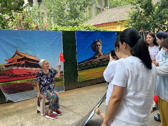 8月5日上午,团队按计划抵达陕西省商洛市百顺山庄老年公寓。在工作人员引导下,队员将背景布固定在大厅墙面,调整反光板位置,摆放拍摄所需道具,测试设备运行情况,完成临时摄影点的布置。在正式拍摄前,队员与老人面对面交流,询问其生活习惯、兴趣爱好及在公寓的日常安排,并记录相关信息,为后续影像记录提供参考。部分老人主动分享了青年时期的工作经历与家乡变化,团队成员在交流中收集了大量口述资料,为后续调研环节奠定了基础。