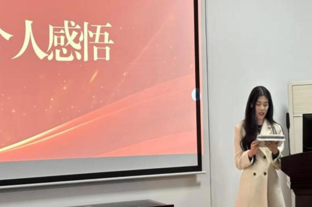 随后,在“青年榜样——星光引航与自我精进”部分,薛羽恬分享了三位新时代青年先锋的事迹,以真实案例彰显时代使命。她继而围绕“青年使命——弘毅任重与知行合一”深入阐释了习近平总书记关于青年工作的重要论述,明确个人成长与国家战略同频共振的实践路径。