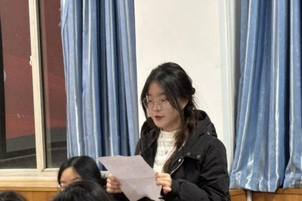 活动伊始,薛羽恬围绕“青年精神——薪火赓续与时代新义”展开阐述,强调理想信念是青年精神之源,敢担当是精神之要,能吃苦是精神之基,肯奋斗是精神之力。她通过回望中国近现代史中青年的使命担当,结合新时代青年的责任要求,号召全体同学在民族复兴征程中激扬理想、赓续奋斗。