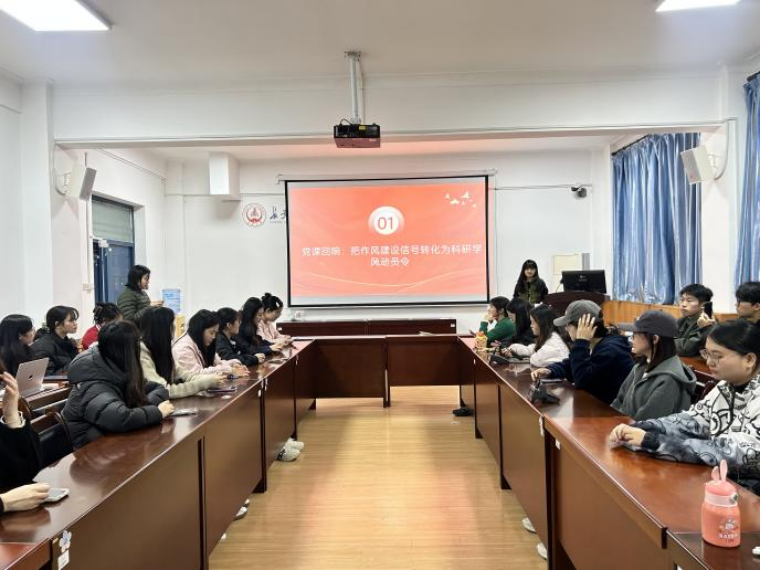 在交流发言环节,两支部党员围绕“学风建设与科研精神”“学科发展与青年使命”等主题展开深入研讨。第一党支部党员董芳棋同志结合自身科研经历,谈到过硬学风是学术共同体的基石,研究生党员要以更高标准要求自己,在学术写作、科研诚信和时间管理中做到言行一致,积极营造求真务实的研究氛围。第二党支部党员梅文静同志从人文学科发展的角度指出,青年党员应主动把握学科交叉与数字人文等前沿趋势,将党的创新理论与学科研究方向相结合,在学术探究中彰显社会关怀与人文精神。