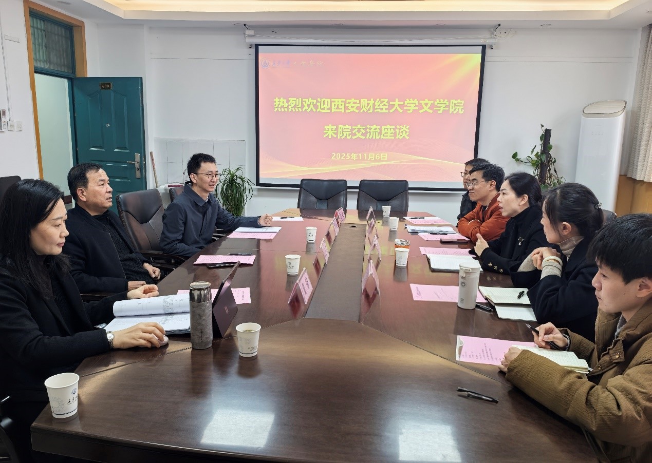 2025年11月6日,西安财经大学文学院院长张颖、副院长刘祥文、国际中文教育学位点负责人王玉珠、中文系主任赵金平等一行5人来学院交流,太阳成集团tyc33455院长杜智民、副院长杜波、国际中文教育学位点负责人冀芳、研究生培养与管理主管李艳参加交流会,会议由副院长杜波主持。