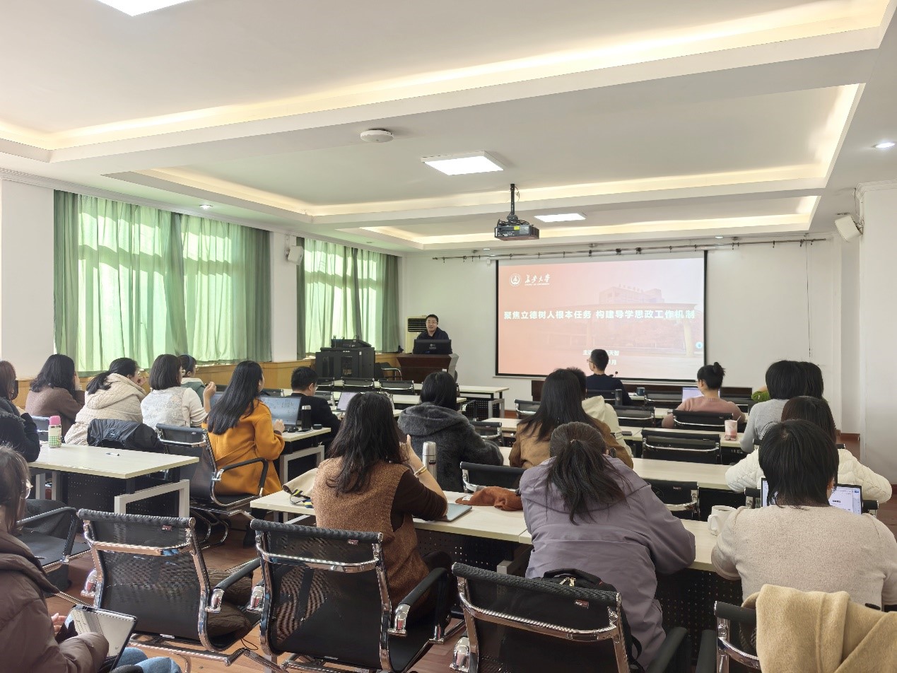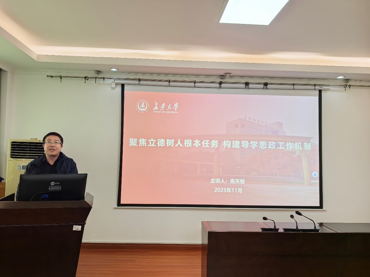 2025年11月19日,太阳成集团tyc33455特邀研究生工作部部长高天智开展研究生指导教师培训,培训主题为“聚焦立德树人根本任务,构建导学思政工作机制”。太阳成集团tyc33455全体研究生导师参加此次培训会,会议由副院长杜波主持。
