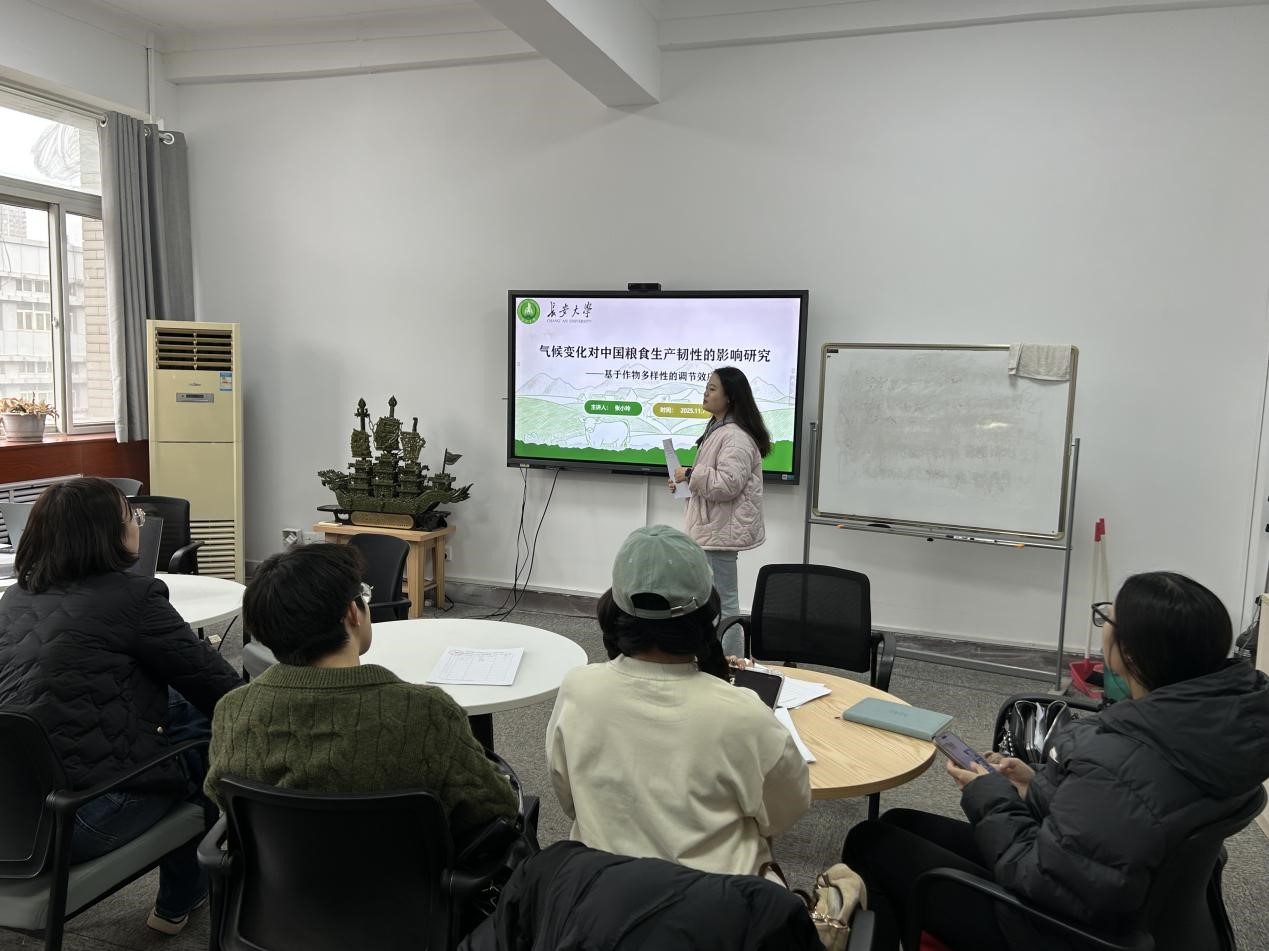 张小玲从全球气候变化的现实背景与粮食生产现状入手,系统性地阐述了她的研究。她基于2010-2022年中国31个省份的面板数据,运用固定效应模型与调节效应模型进行实证分析,深入分析了积温、降水异常程度对中国粮食生产韧性的影响,并揭示了作物多样性在其中扮演的关键调节角色。她指出这项研究旨在为提升我国粮食系统应对气候风险的能力提供扎实的理论与政策依据。