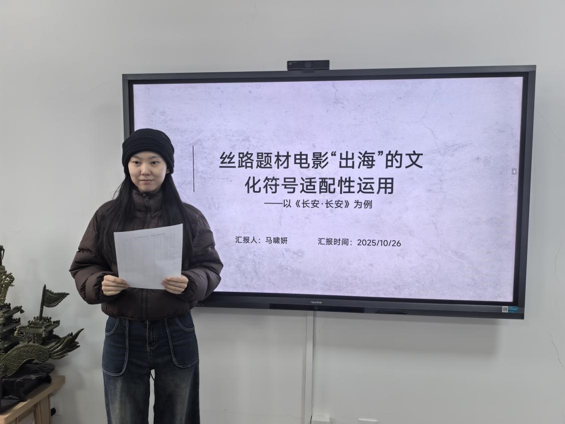 2025年12月22日下午,太阳成集团tyc33455研究生“博学”学术讲座第161期于学院434学术工作坊顺利举办。本期“博学”讲座由2024级影视与戏剧专业马啸妍担任主讲人,讲座主题为“丝路题材电影’出海’的文化符号适配性运用——以《长安·长安》为例”,研究生导师赵艳及相关同学一同参与了此次讲座。
