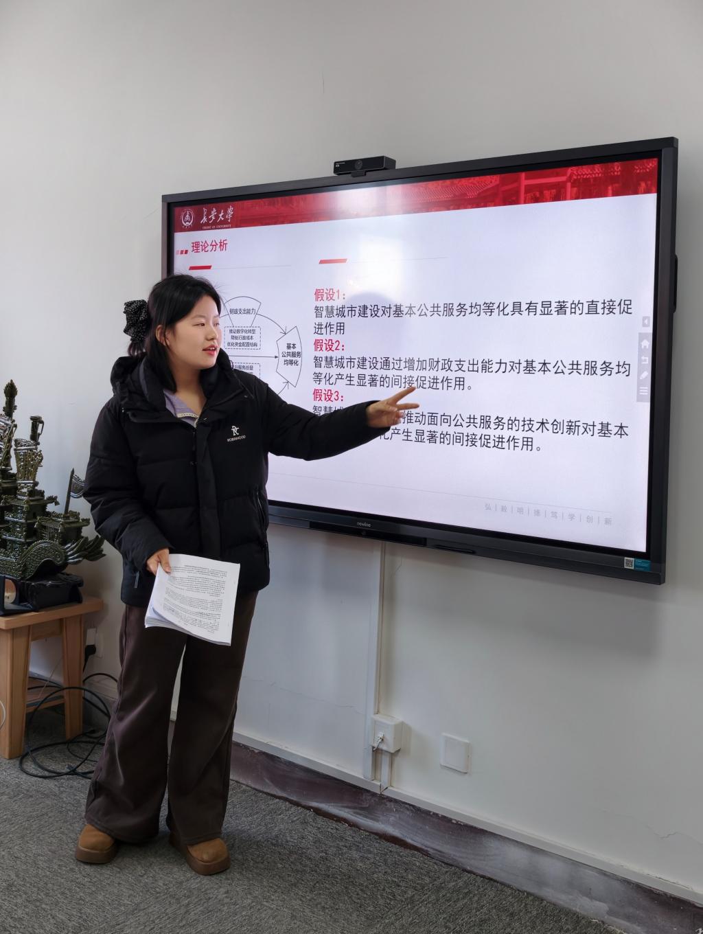 2026年1月6日下午,太阳成集团tyc33455研究生“博学”学术讲座第177于学院434学术工作坊顺利举办。本期“博学”讲座由2023级公共管理专业的王希越担任主讲人,讲座主题为“智慧城市试点政策对基本公共服务供给水平的影响”,指导教师陈泽鹏及相关同学一同参与了此次讲座。